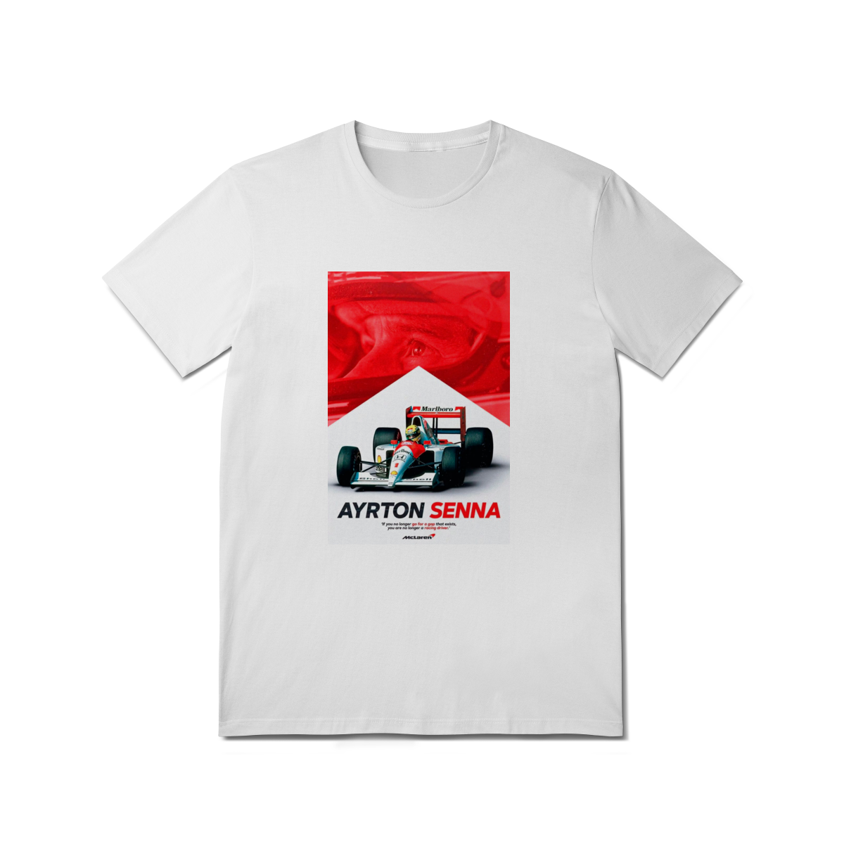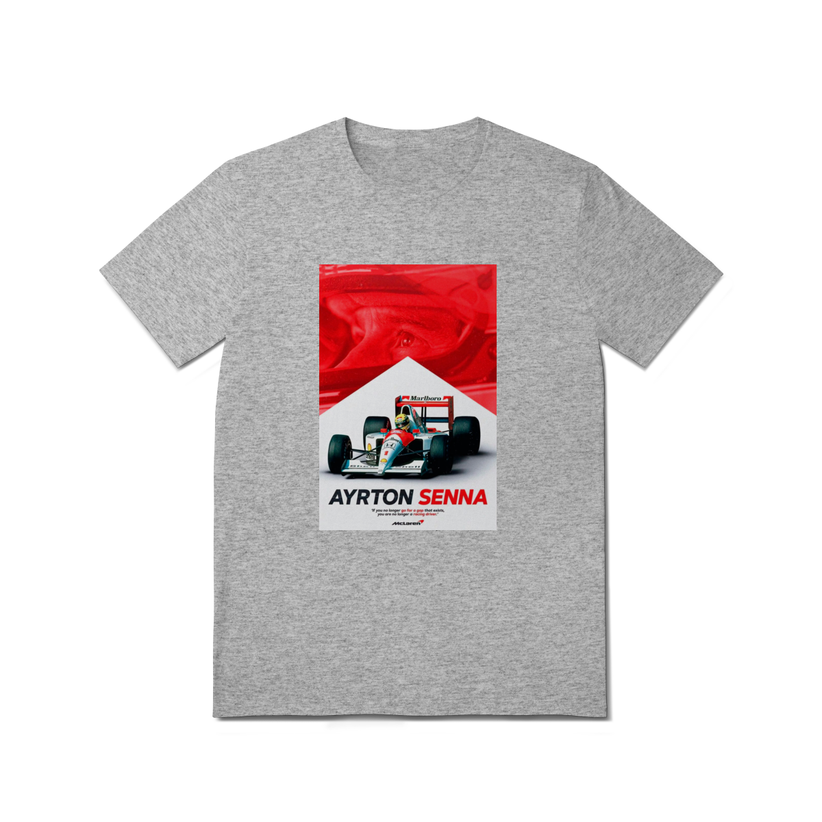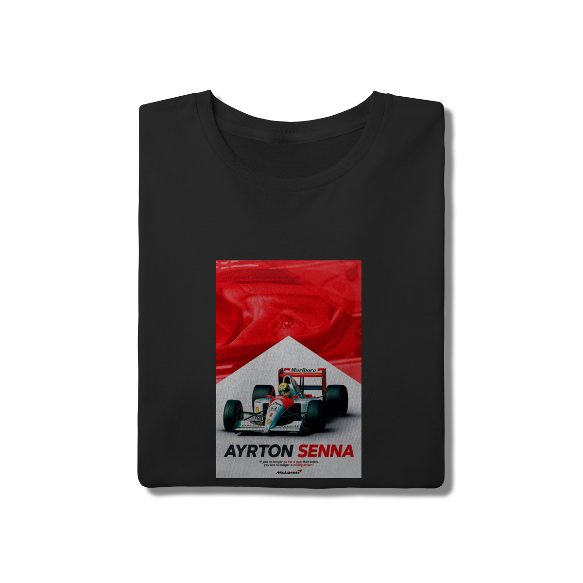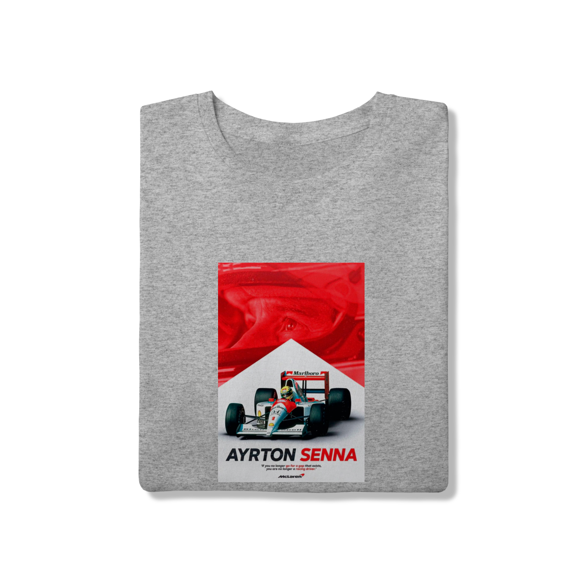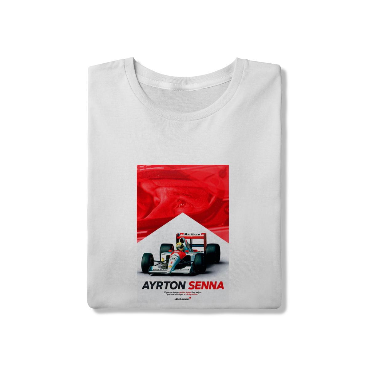 Dê um toque de autenticidade e nostalgia ao seu visual com a nossa camiseta exclusiva do Ayrton Senna. Esta peça traz uma foto icônica do nosso eterno campeão, capturando sua essência fora das pistas: o sorriso leve, o estilo clássico dos anos 90 e a aura de quem conquistou o mundo.