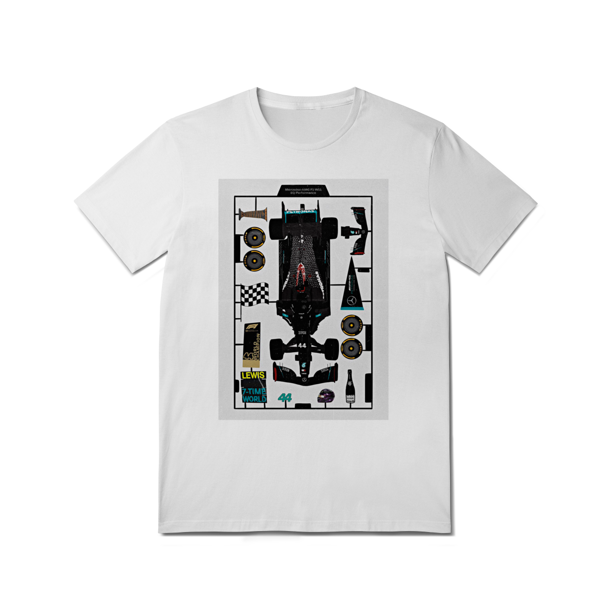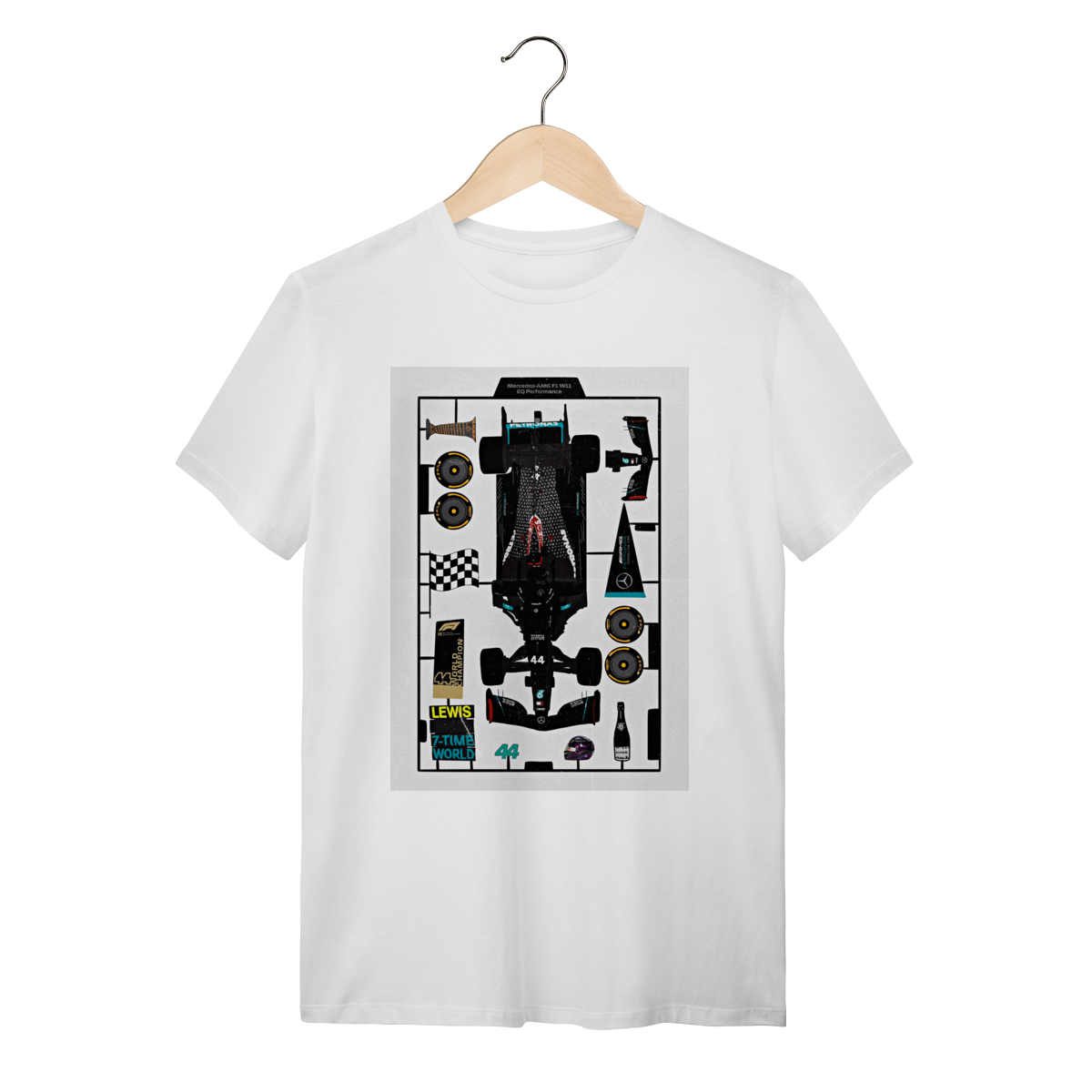 Algumas lendas nascem prontas, outras são construídas peça por peça. Esta estampa traz o conceito de "Model Kit" aplicado à carreira de Lewis Hamilton. Do chassi dominante do W11 aos sete títulos mundiais, cada elemento da trajetória do Sir Lewis está aqui. Um design técnico para quem aprecia a engenharia por trás do maior vencedor da história.