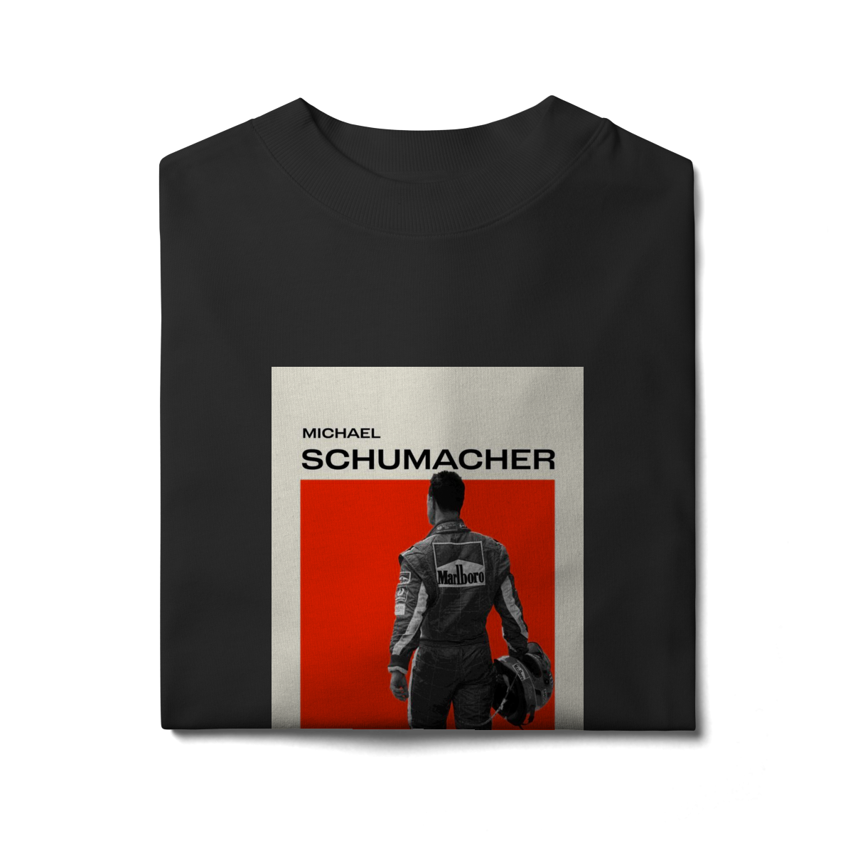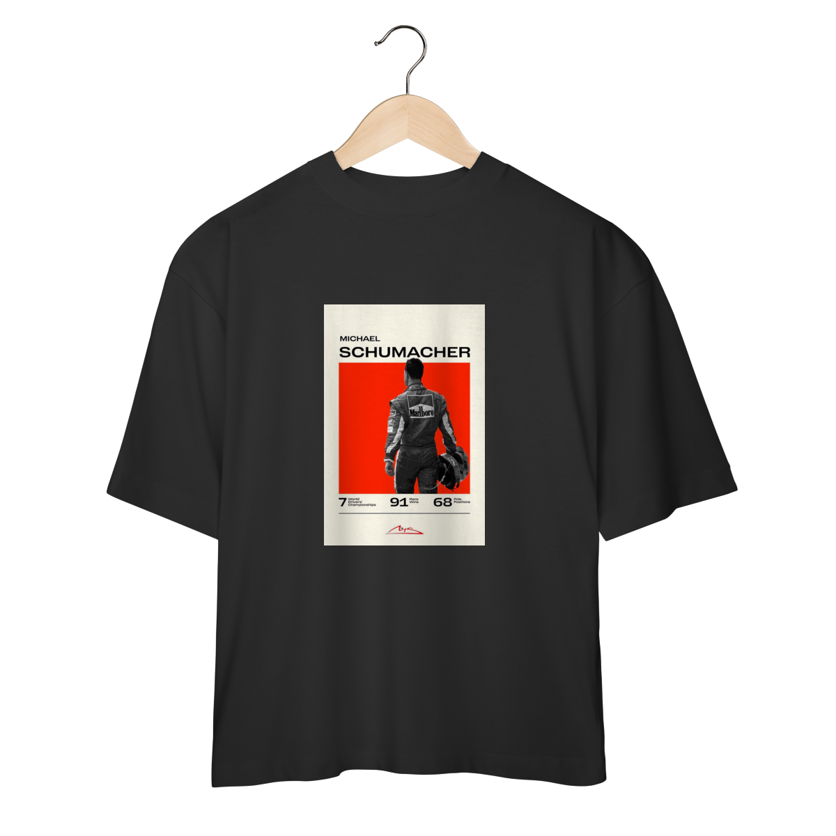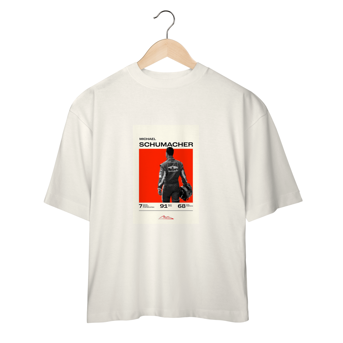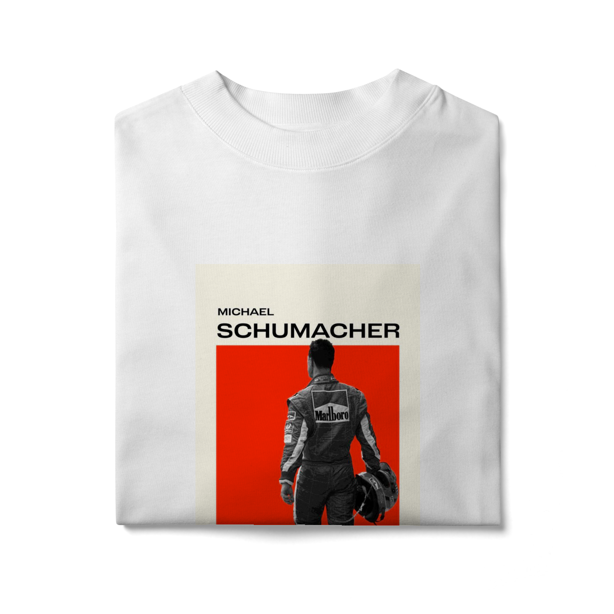 Vista a história do maior vencedor da era moderna da Fórmula 1. Esta camiseta celebra a lenda de Michael Schumacher, o piloto que redefiniu os limites da velocidade e da estratégia. A estampa traz uma imagem icônica do "Kaiser", capturando a intensidade e o foco que o levaram a conquistar sete títulos mundiais.