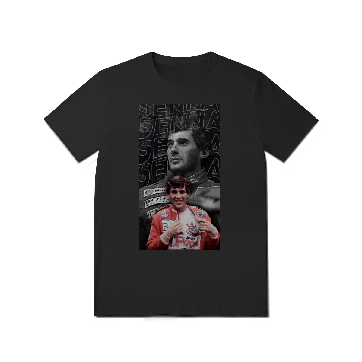 Existem conexões que transcendem o esporte, e a paixão de Ayrton Senna pelo Corinthians é uma delas. Esta camiseta celebra o encontro entre o maior piloto da história e o Time do Povo. Com um design exclusivo que une o icônico capacete amarelo à tradição do manto alvinegro, esta peça é feita para quem carrega o orgulho de ser brasileiro e corinthiano no peito.